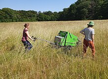 Durch die Gewinnung von regionalen Saatgut auf geeigneten Spenderflächen und die anschließende Ausbringung auf Empfängerflächen kann das Ökosystem Wiese optimiert werden. Neben dem naturschutzfachlichen Wert haben die so entstehenden Blumenwiesen auch einen hohen Wert für die Naherholung. Als attraktive Landschaftsgestaltungselemente können sie zur Vermittlung von umweltspezifischen Themen (z.B. Hinweise zu Artenvorkommen, Artenreichtum) dienen und bieten Nahrung für Insekten. Für die Ernte von Saatgut werden speziell dafür angefertigte Geräte benötigt. Für große und gut zu bewirtschaftende Flächen (landwirtschaftlich genutzte Wiesen) kommt ein hydraulisch betriebenes Anbaugerät für den Schleppereinsatz in Frage. Kleine, aufgrund ihrer Reliefs (Dämme) oder Wasserhaushaltes (Nasswiesen) schwierige Flächen können mit einem Ein-Mann-Gerät kleinflächig beerntet werden. Um das Saatgut haltbar zu machen wird darüber hinaus ein Trockenschrank benötigt.