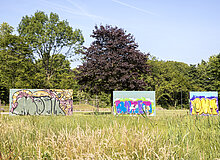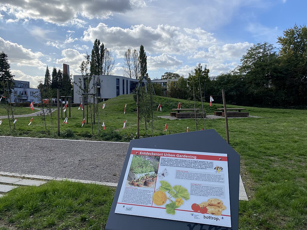 Im Grünen Klassenzimmer können alle etwas über die ökologische Funktion des Parks und seiner Grünflächen lernen: an fünf Entdeckerorten, auf dem Naturspielplatz, auf der öffentlichen Obstwiese, beim Urban Gardening und durch diverse Infotafeln.