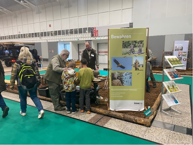 Vom 28. Januar bis 2. Februar 2025 war RVR Ruhr Grün wieder mit einem tollen Stand auf der Messe Jagd und Hund in Dortmund vertreten. Mit über 80.000 Besuchern war die Messe erneut ein Publikumsmagnet – und unsere Ranger haben alle Hände voll zu tun gehabt.