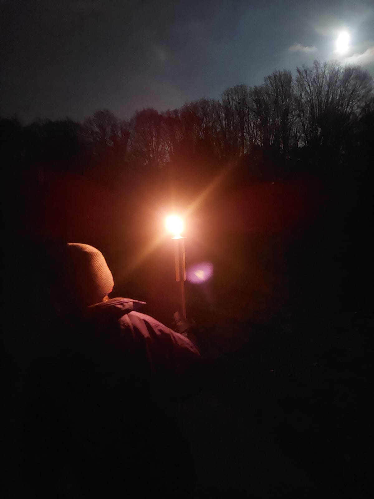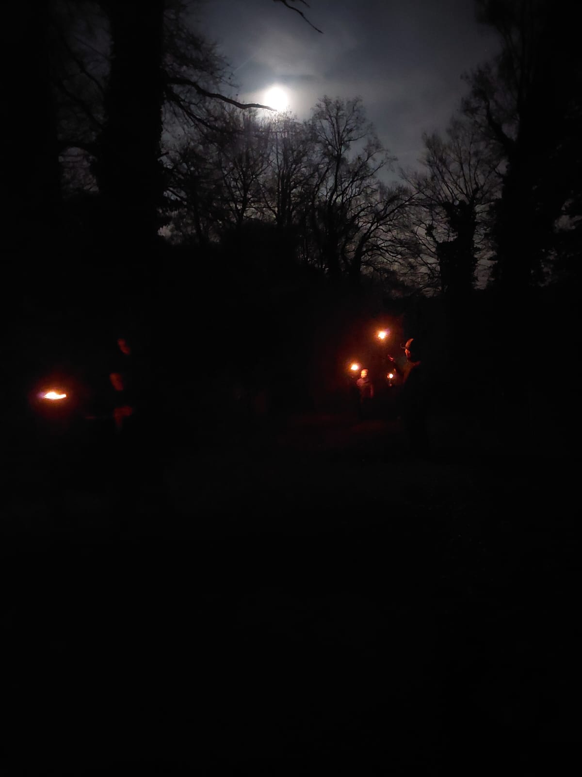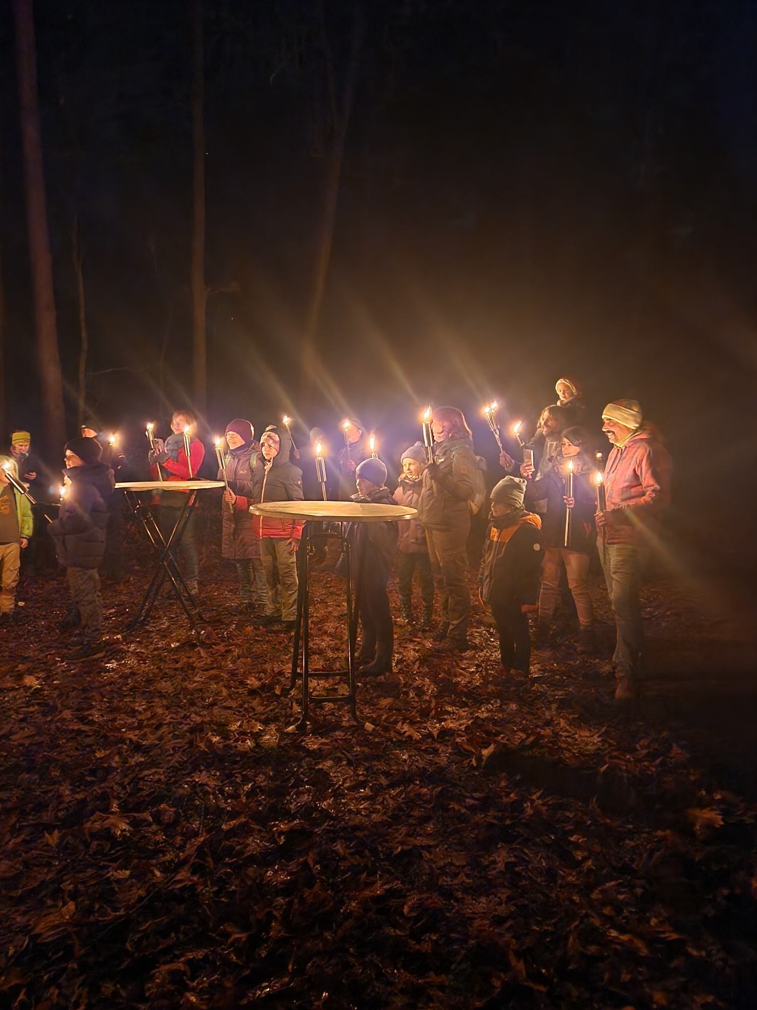 In der Dunkelheit starteten alle vom Rangerstützpunkt Hof Punsmann in Lembeck und mit Fackeln bestückt auf die Suche nach dem Nikolaus, der im Wald versteckt auf die Teilnehmer wartete. Zwei Ranger von RVR Ruhr Grün führten die Kinder tief in den Wald und trugen unterwegs auch ein Weihnachtsgedicht vor. Auch die Kinder haben Nikolauslieder vorgetragen, bis der Nikolaus im Wald an einer Feuerschale sitzend gefunden wurde. Dort gab es dann vom Nikolaus und seinen Gehilfen einen leckeren Weihnachtspunsch.